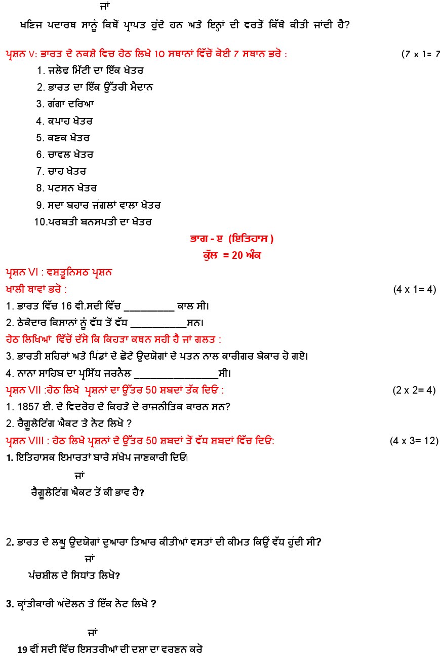 Sample Paper Class Eighth Social Science Pbi. 2020-21